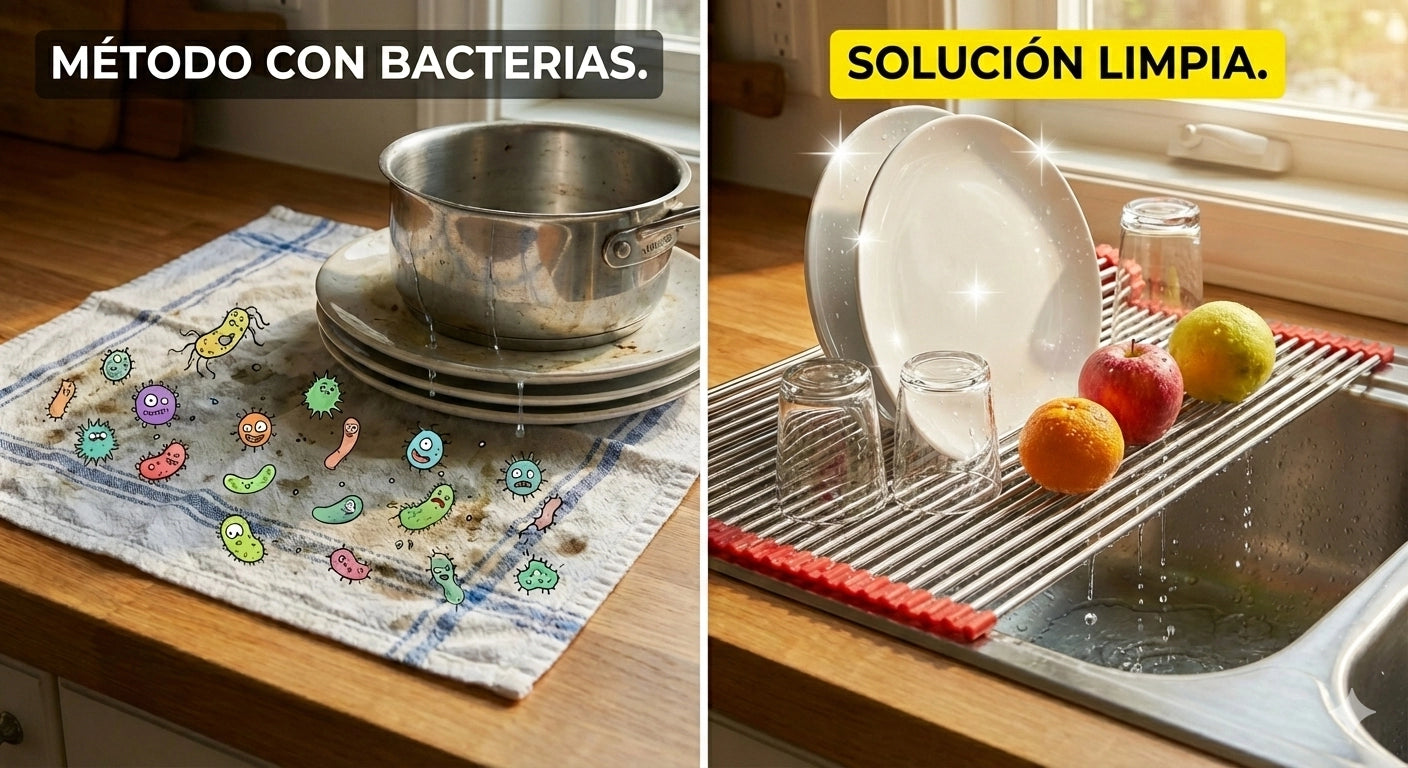 ¿Sabías que los escurridores de tela y plástico acumulan millones de bacterias y mal olor por la humedad constante?